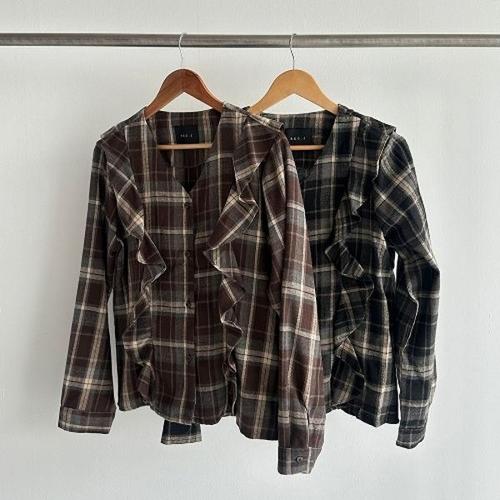 [다잇템][다잇템] 여성 V넥 FW 패턴 격자 프릴 블라우스_23308919_588872