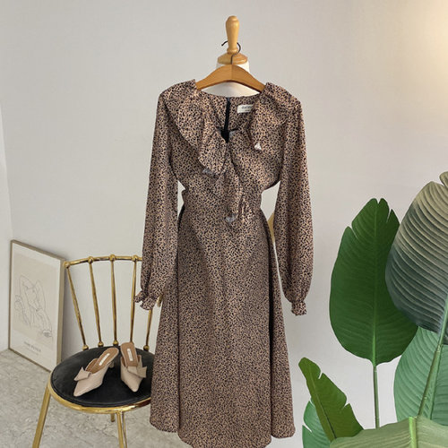 허니제이 / 르보 레오파드 프릴 브이넥 긴팔 롱 원피스