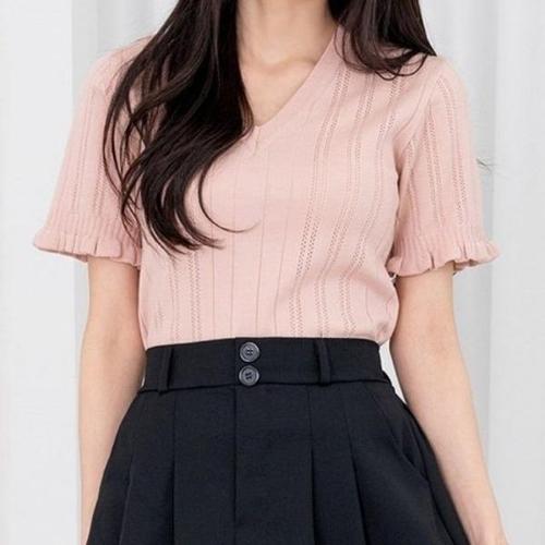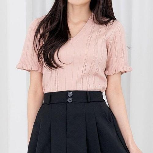 [엄지척]브이넥 니트 반팔티 기본 프릴소매 여름옷 데일리티_19659941_667501