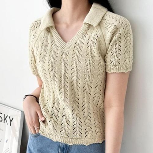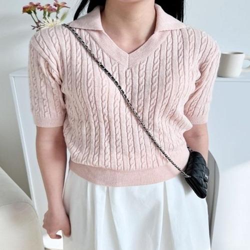 [엄지척]여성 캐시울 케이블 브이넥 카라니트 여름니트 반팔티_19678193_667501