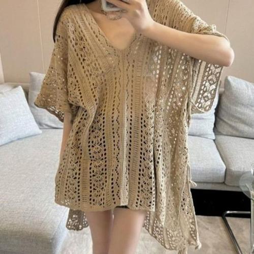 [엄지척]그물 블라우스 언발란스기장 옆프린지 반팔티 브이넥_19679529_667501