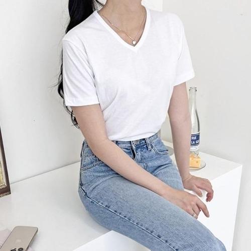 [엄지척]여자 브이넥 스타일 반팔티 1P 여름 고품질 기본 반팔_19643822_667501