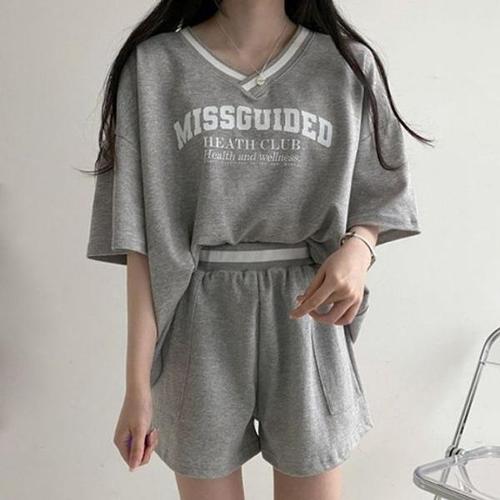 [다잇템][다잇템] 여성용 하프팬츠 캐쥬얼 V넥 반팔티와 면혼방 세트_23436813_588872