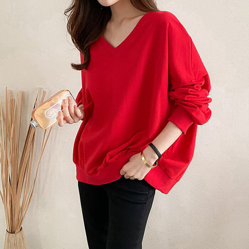 나야홍 / 빅사이즈 601 파임브이넥밴딩맨투맨 DILE639
