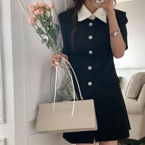 클래식 진주버튼 여성 배색 카라 반팔 미니 원피스 WFIXA8V