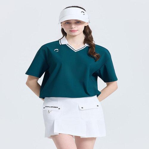 [챌린저]여성 V카라넥 스트링 반팔 티셔츠 다크그린_CHF2WST6969DN_IC