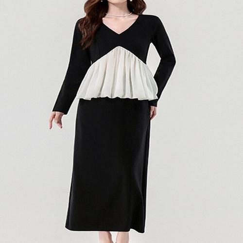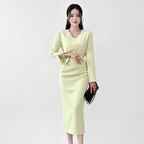 [클라셰]클라셰 셔링플레어브이블라우스+스커트SET_B6S0016