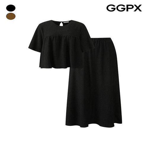 [GGPX]셔링 러플 반팔 블라우스 앤 스커트 셋업 (GQ3ST007F)