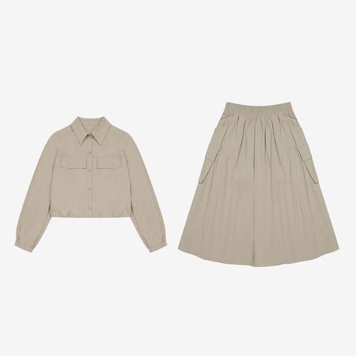 [나인식스뉴욕]플레어 셔링 블라우스 앤 스커트 셋업 (NQ3ST002M0)