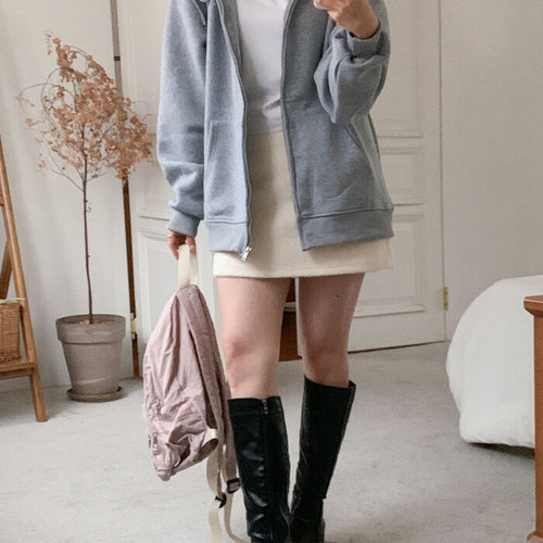 에르디테 / 여성 기모 무지 루즈 오버 핏 후드 집업 아우터 그레이 블랙