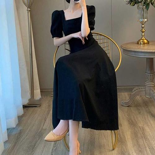 [오너클랜]인기상품 벌룬소매 A라인 블랙 롱원피스 스퀘어넥 데이트룩 [WFEAD18_250916]