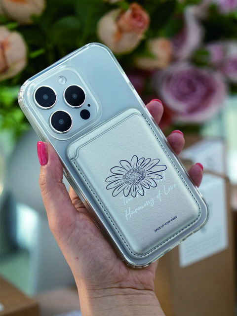 [수이브] L거베라 샤인실버 2장수납 비건레더 맥세이프 카드지갑 케이스
