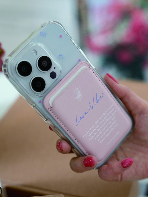 [수이브] S거베라 베이비핑크 2장수납 비건레더 맥세이프 카드지갑 케이스