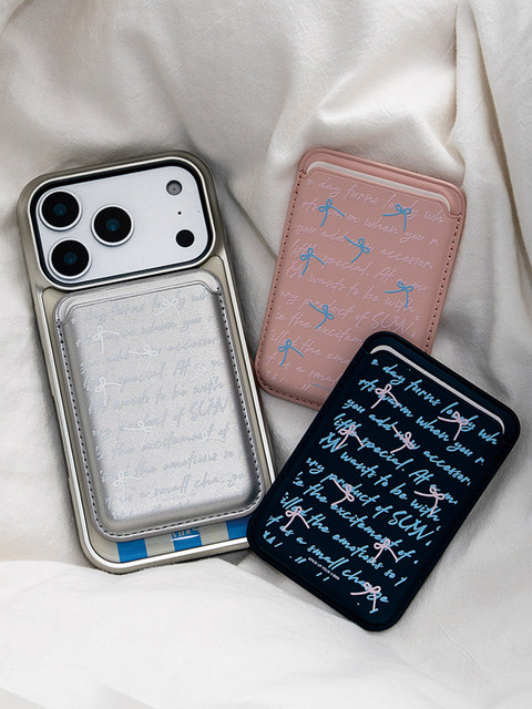 [수이브] 리본 패턴 레터링 2장수납 비건레더 맥세이프 카드지갑 케이스