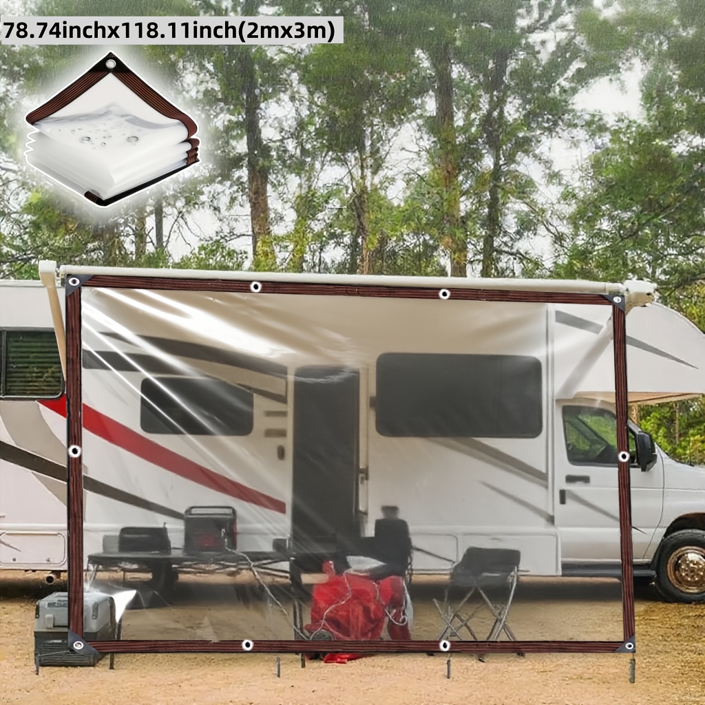 TEMU 방수 타프, RV 확장 액세서리 및 캠핑 확장 사이드 커튼용 비닐 커버, 무색 투명으로 시야 방해 없음, 야외 극한 날씨 사용에 적합, 온실, 마당, 정원, 발코니, 가을 겨울 시즌용 방습 커버, RV 캠핑 필수품