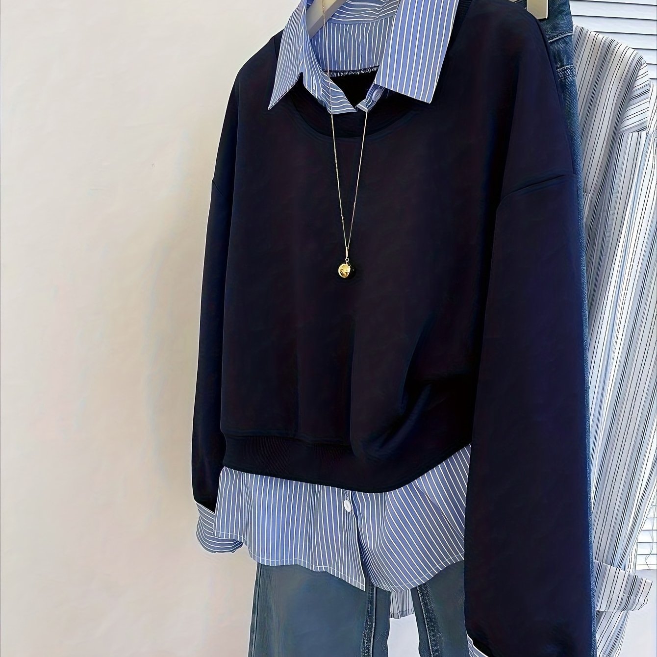 TEMU 봄 신상 여성 셔츠 칼라 드롭 숄더 긴팔 캐주얼 스웨트셔츠