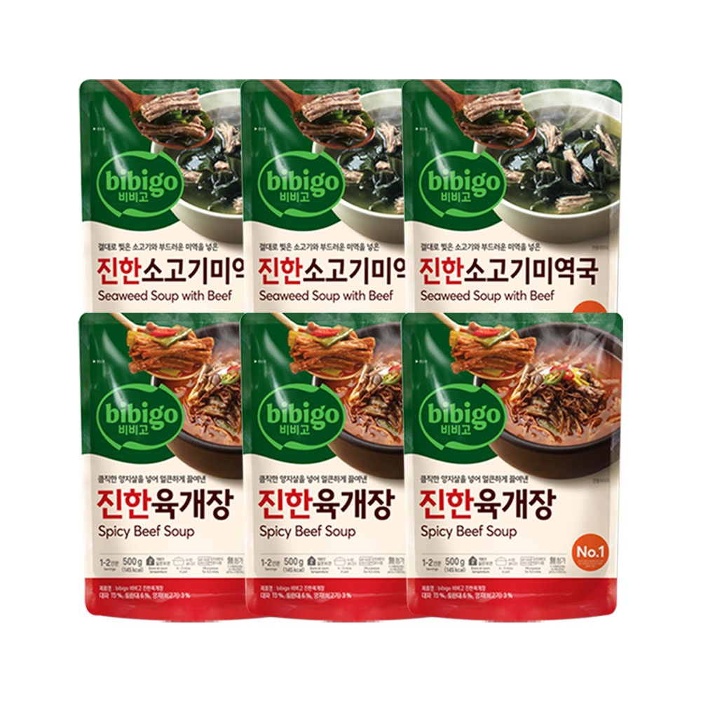 비비고 진한 소고기미역국 500g x3개+진한 육개장 500g x3개