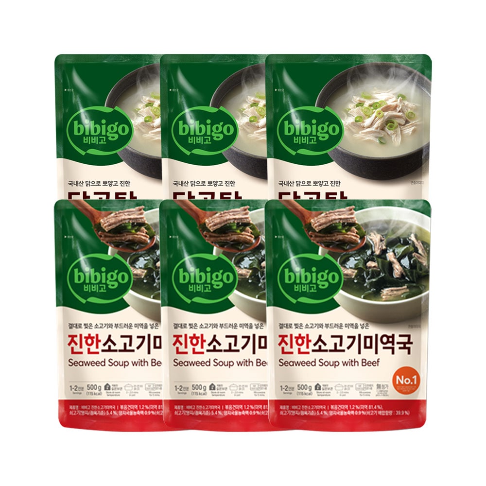 비비고 진한 소고기미역국 500g x3개+닭곰탕 500g x3개