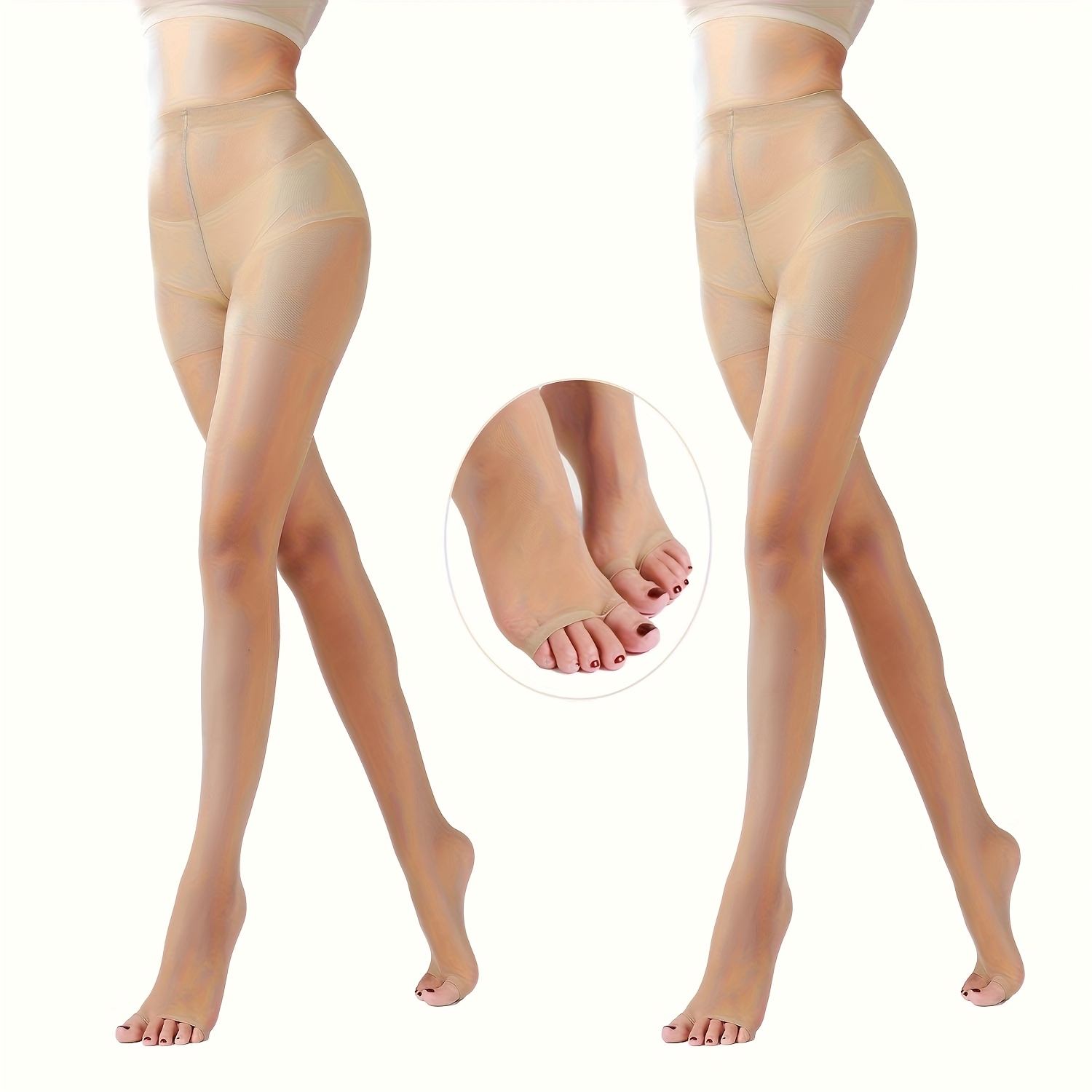 TEMU 2개 세트 우아한 여성용 시스루 타이츠 - 하이웨이스트 가터 바디스타킹, 오픈토 디자인, 얇은 스타일