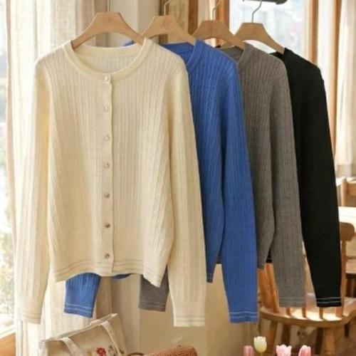 바네사빈 비스코스 라운드 버튼 기본 니트 가디건 v00157