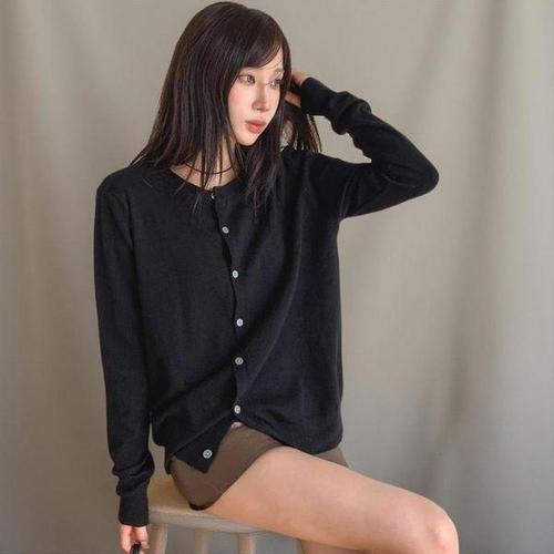 [신상오픈런]여성 비스코스 단색 라운드넥 니트 가디건