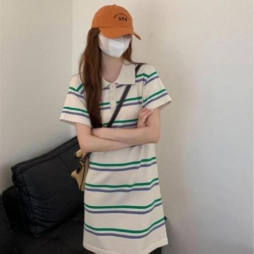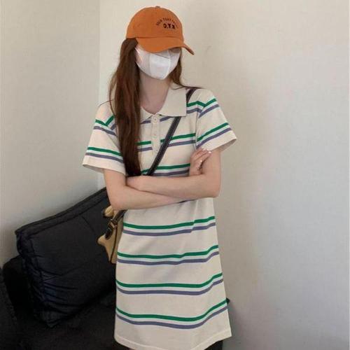 [다잇템][다잇템] 여자 쁘띠 줄무늬 비스코스 카라넥 반소매 콘트라스트 원피스_22004793_588872