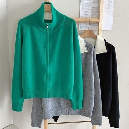 [다잇템][다잇템] 여성 자크 비스코스 콘트라스트 카라넥 스웨터 레글런 가디건_22300797_588872