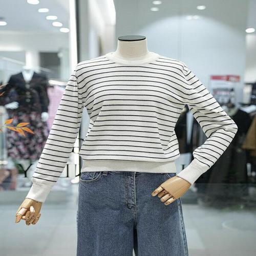 [BCBG]BCBG 세이브존01 배색 스트라이프 라운드넥 니트 풀오버 B6A2K407_A (46835683)