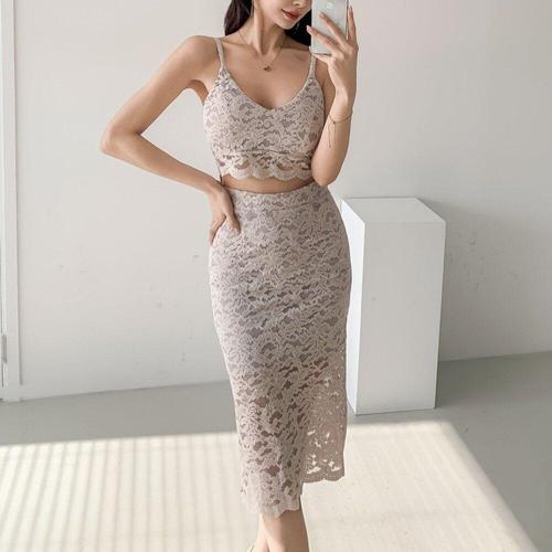 [다잇템]여성 레이스 슬릿 비침 슬림핏 중간 원피스