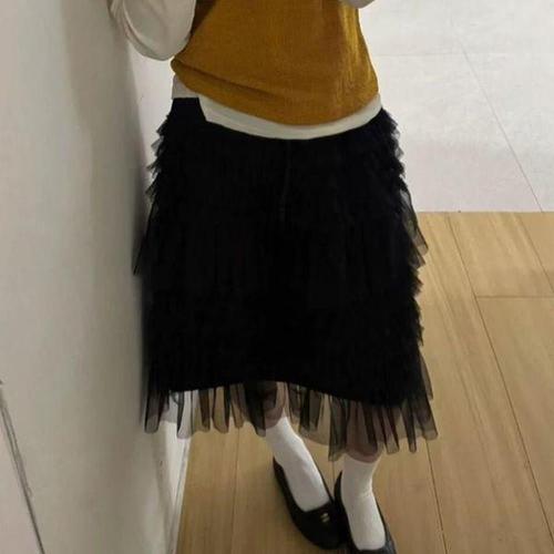 [다잇템]여성 비침 일상 프릴 로맨틱 치마