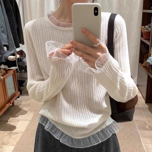 [다잇템]여자 프릴 슬림핏 골지 U넥 비침 니트