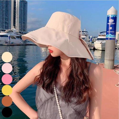[에이치플러스몰]여자 3컬러 썸머 모자 빅리본 버킷햇 돌돌이 썬캡