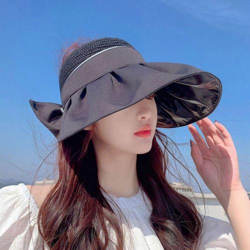 빅리본 돌돌이 와이드챙 라탄 썬캡 버킷햇 블랙코팅 WF06CF5