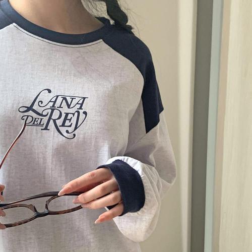 자스민벨 머핀 라운드 오버핏 레터링 프린팅 코튼 래글런 나그랑 배색 긴팔 맨투맨 남녀공용 커플템 커플티 빅사이즈
