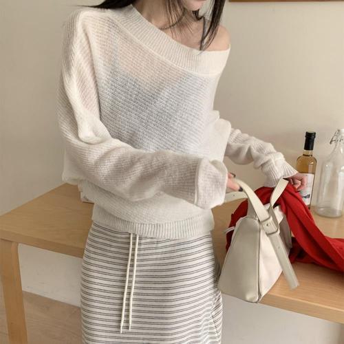 [셀럽하우스]빅사이즈 AKKK2861 간절기 니트 티 셔츠 데일리 스웨터 크림