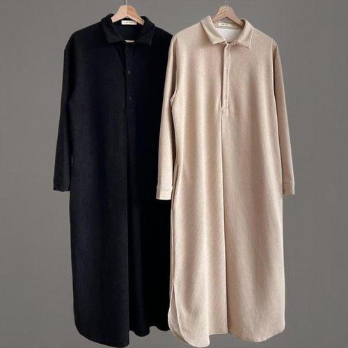 [신상오픈런]여성 겨울 기모 반오픈 셔츠 골덴 빅사이즈 롱드레스
