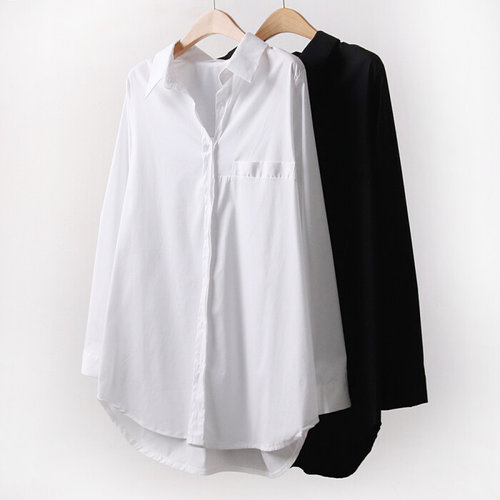 빅사이즈여성의류 면 스판 오버핏 카라 롱 셔츠 봄가을 편안한 착용감 신축성 베이직 남방 66~120 size 큰옷
