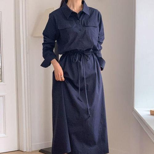 [유야]카라 셔츠 캉캉 롱 원피스 꾸안꾸 -OP0568H- 빅사이즈 루즈핏 여성 가을