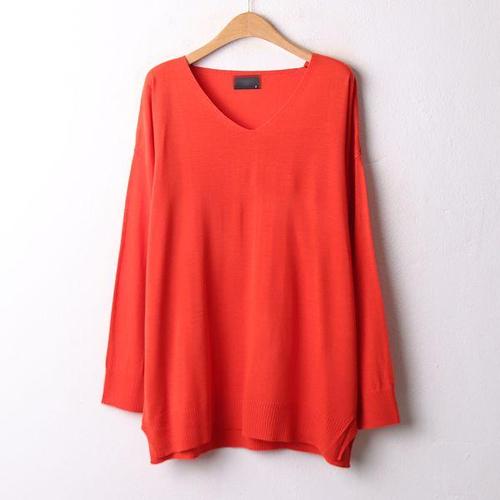 모던스튜디오 여성용 브이넥 루즈핏 니트 빅사이즈