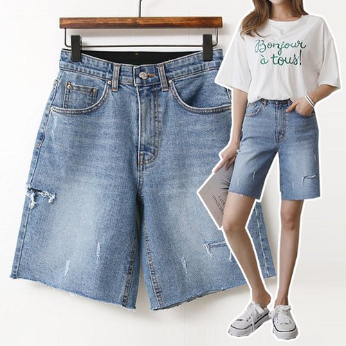 빅사이즈 여성의류 히든밴딩4부데님 H207270
