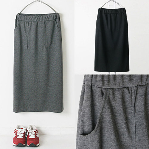 [옷자락] 여자 컷팅 A라인 카고 빅사이즈 밴딩 기모 롱스커트