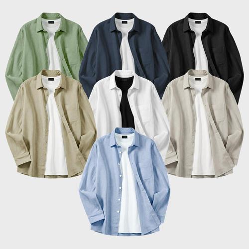 [화이트빌딩]남자린넨셔츠 남성 봄 여름 워싱 린넨 셔츠 캐주얼 긴팔 남방 빅사이즈 남녀공용