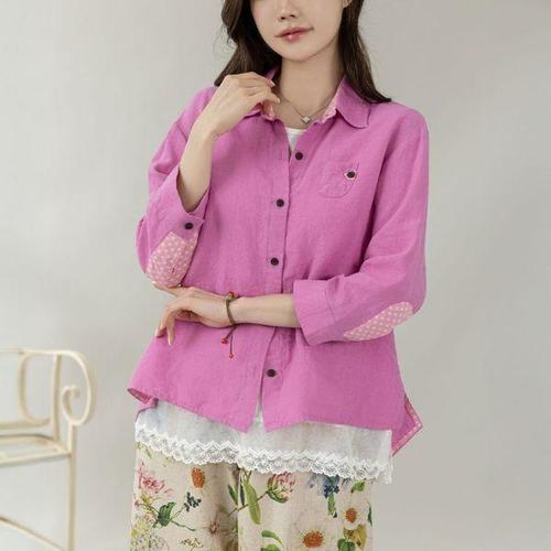 여자 봄 빈티지 빅사이즈 한 셔츠 차이나 긴팔 초슬림핏 린넨 카디건 원픽1