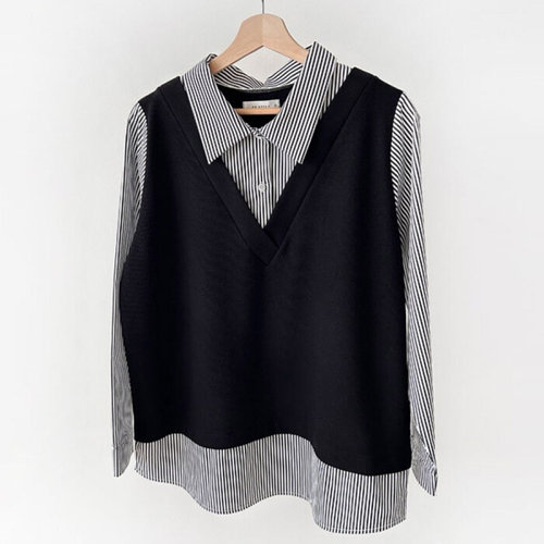 나야홍 / 빅사이즈티 X128L601 조끼레이어셔츠티셔츠 BS