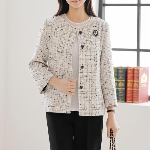 [드리다]드리다 봄 노카라 흰 화이트 트위드 빅사이즈 9부 정장 자켓 하객 모임 상견례