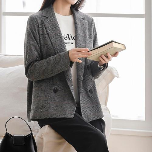 여성 테일러 체크 빅사이즈 하프 더블 자켓 봄 가을 캐주얼 정장 마이