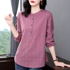 빅사이즈5XL 여장 순면 심플 긴팔 티셔츠 얇은 긴팔티 루즈핏 라운드 셔츠 상의 봄가을 편한 코디 외출 미디긴팔티 엄마옷