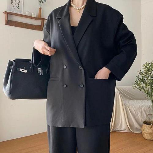 허밍퍼플 여성용 8739-로이스 블랙 자켓 빅사이즈 심플 단색 검정 재킷 투 버튼 편안한 슬림 여성의류