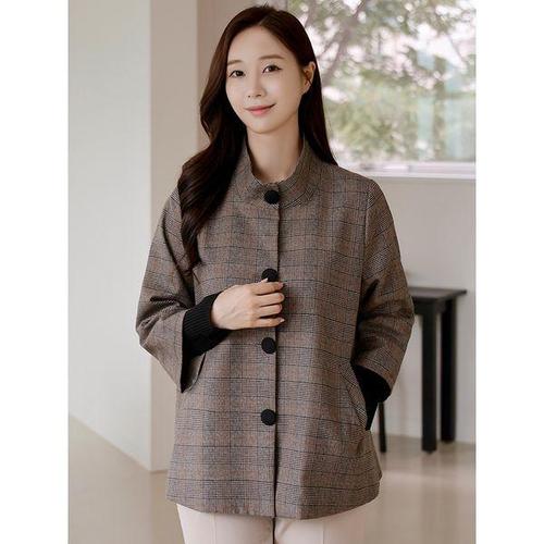 [드리다]가을 글렌 체크 하이넥 빅사이즈 9부 시보리 자켓 40-50대 미시 중년여성 엄마옷 하객 모임