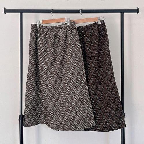 (~XXL까지) 라엘타노 밴딩 체크 플레어 스커트 겨울 데일리 롱스커트 캐쥬얼 출근룩 베이직 빅사이즈